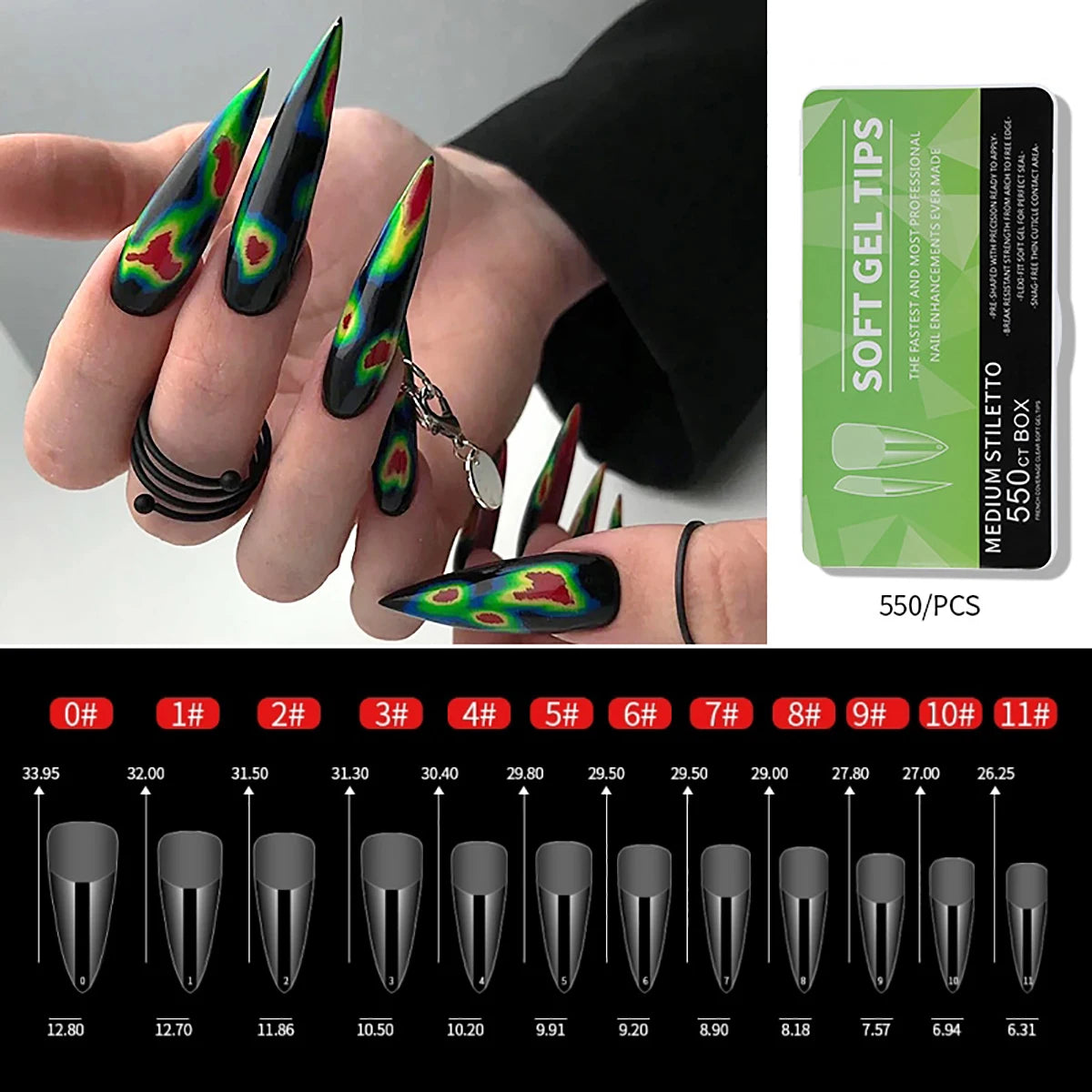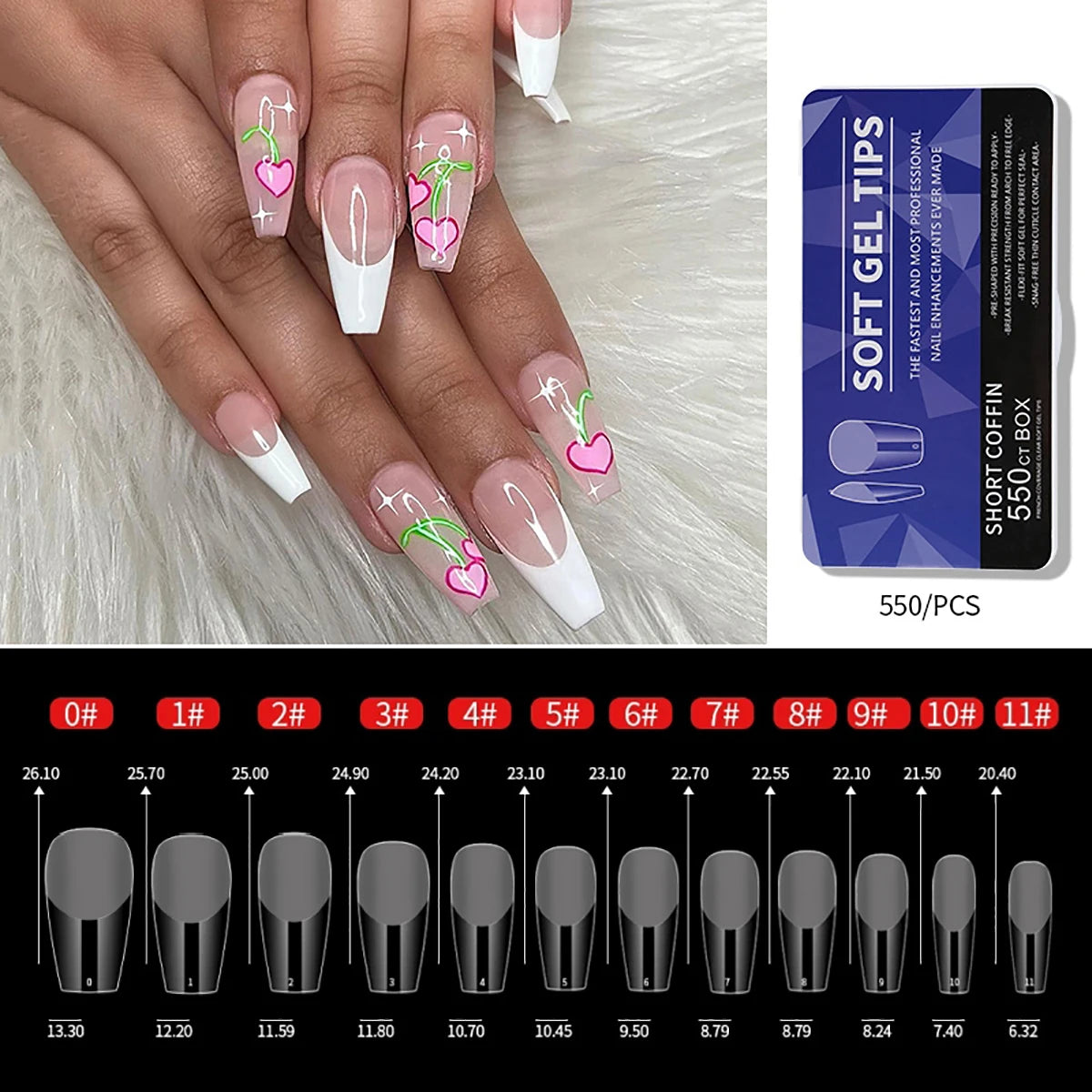 550Pcs Frosted Soft Gel Full Cover Nail Tips,11 Sizes Gel Nail Extensions False Nail Artificial Nails with Case for Nail Salons