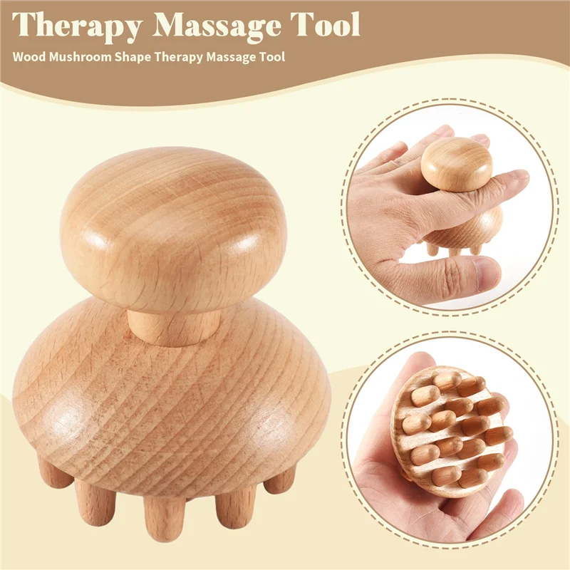 AA20-Wood Mushroom Shape Therapy Massage Tool Massager Anti Cellulite Fascia Massage Roller For Full Body Muscle Pain Relief