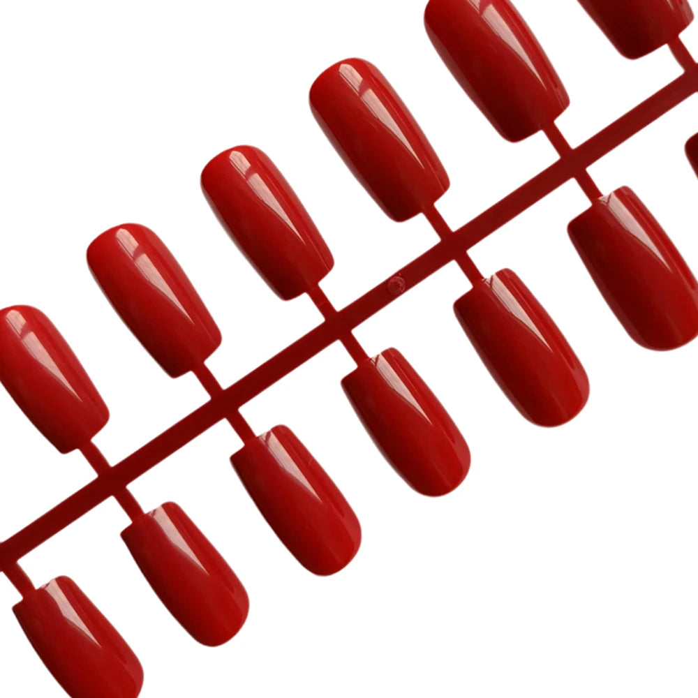 Artificial Press On Fake Nails Glossy Wine Red False Nail Long Square Reusable DIY Lady Fingernail Tip Manicure Tools