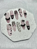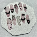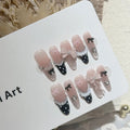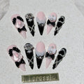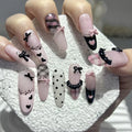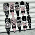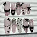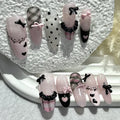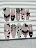 Black Pink Sweet French Almond Handmade Press On Nails Grid Polka Dot Love Skirt Ballet Fake Nails Princess Cute Bow Nail Art