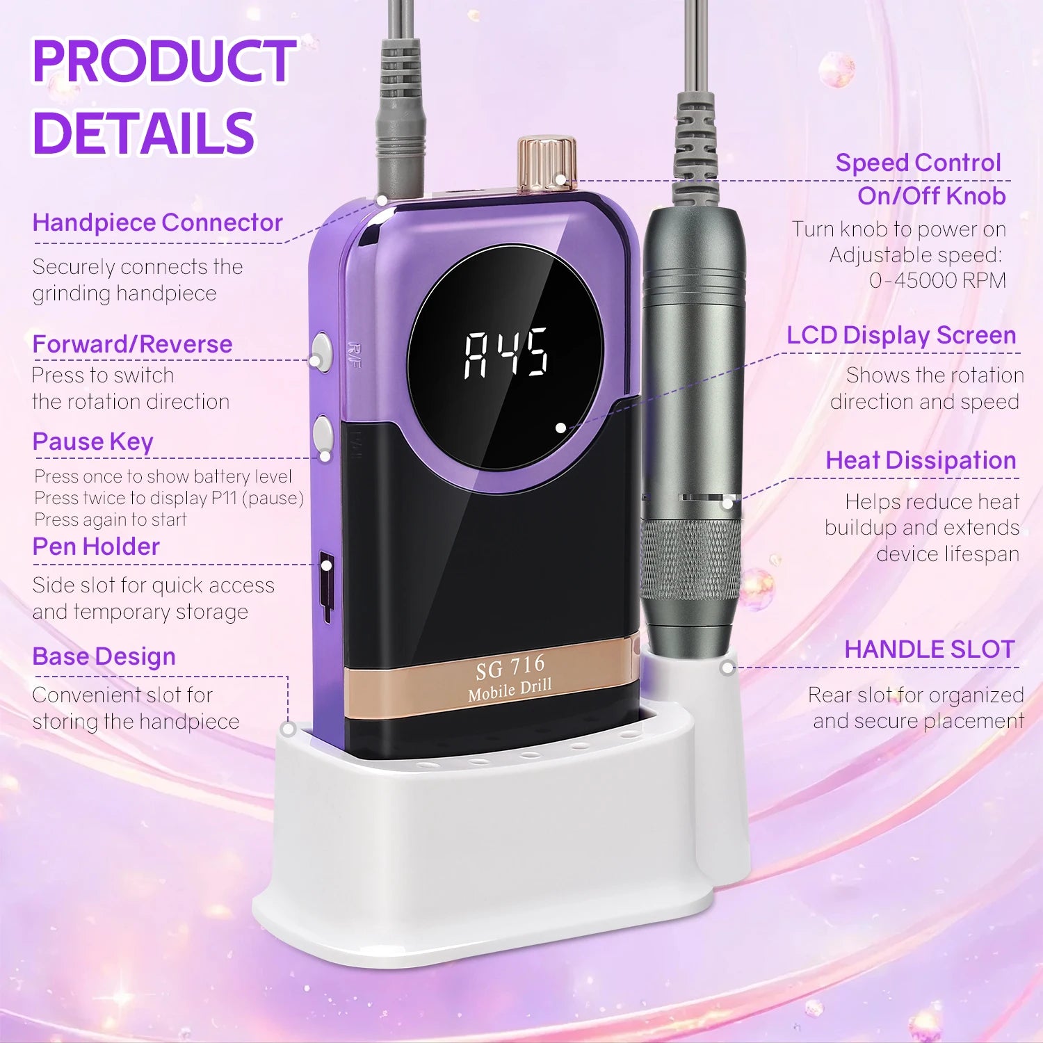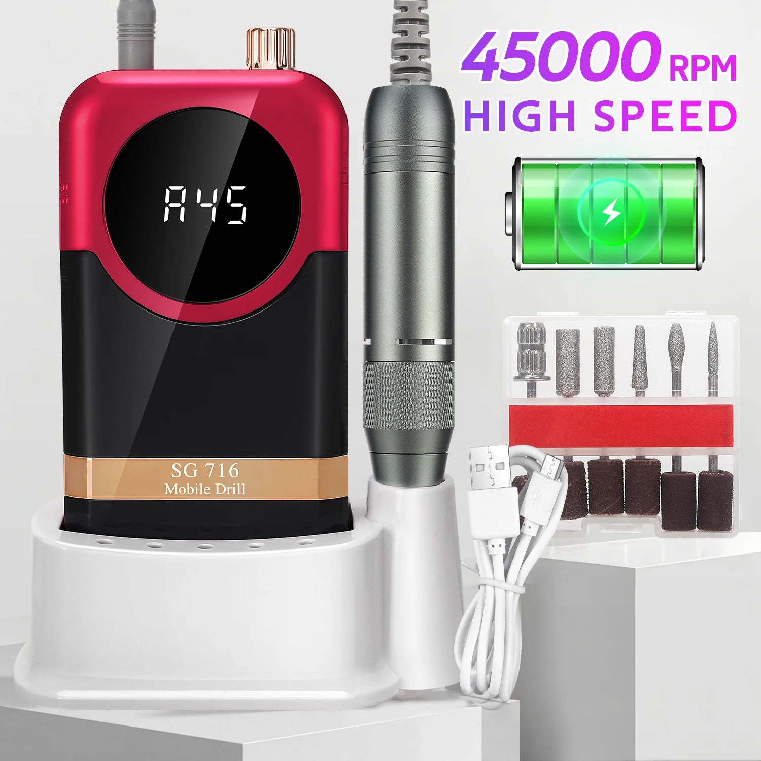DianaBeauty 45000RPM Rechargeable Nail Drill Machine Desktop Polishing Machine Electric Nail File 1800mAh Battery Nail Tools