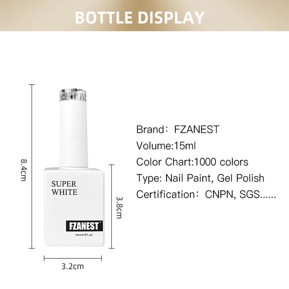 FZANEST Super White Gel Polish Not Yellowing Super Black Nail Polish 15ml Bottles Private Label Colour Led uv Gel Nail Polish