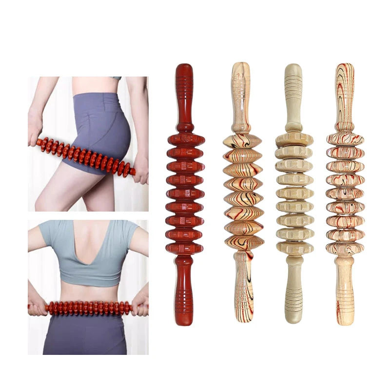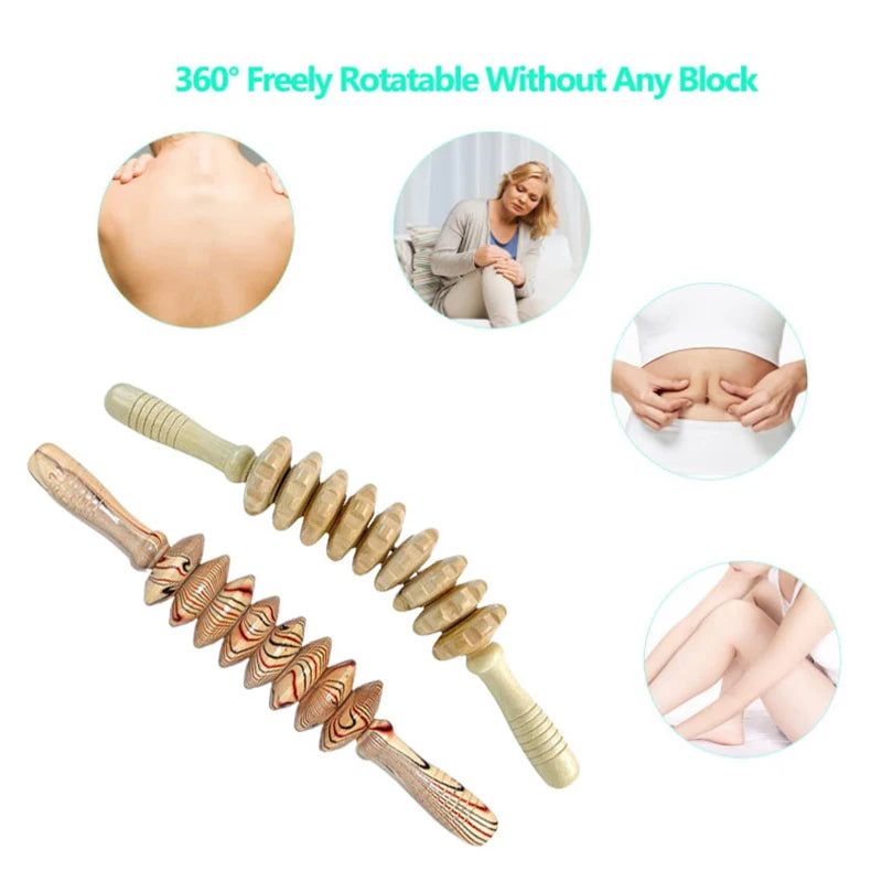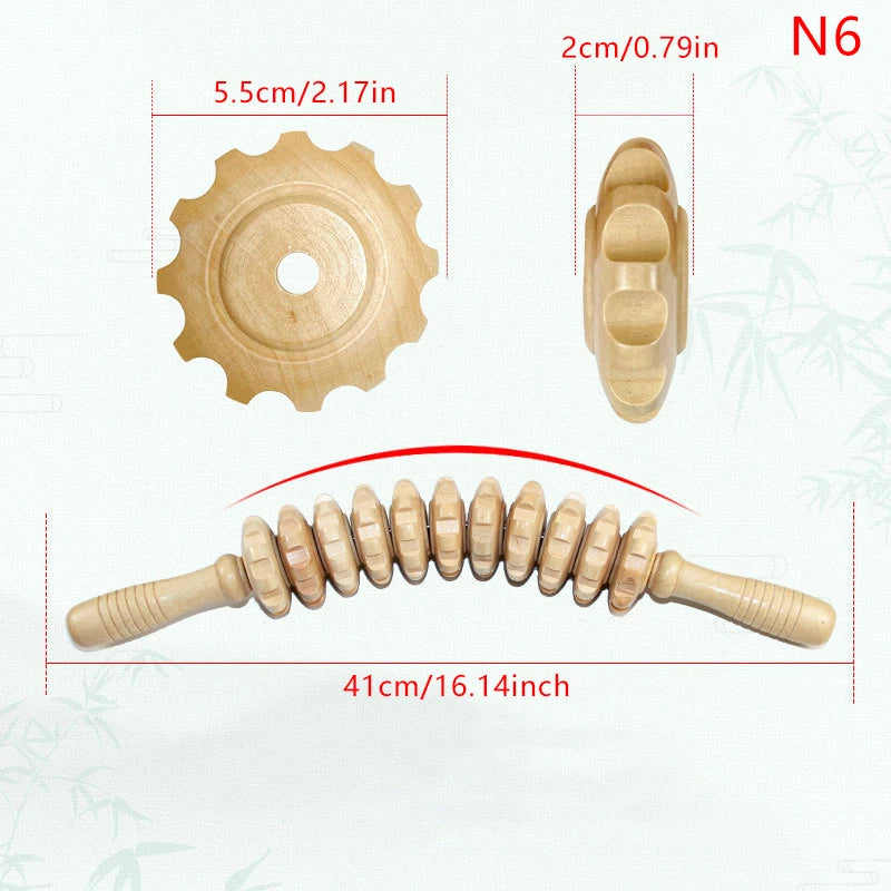 Natural Curved Wooden Massage Roller for Waist and Back, Multi-Functional Body Roller for Cellulite Reduction & Muscle Tension