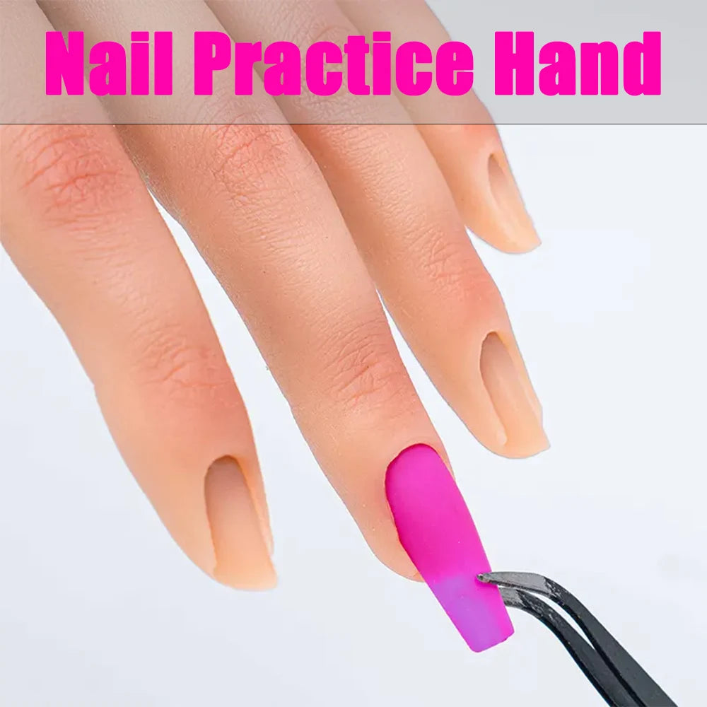 Novice Nail Practice Hand Silicone Soft Nails Art Training Fake Hands for Acrylic Manicure Tool