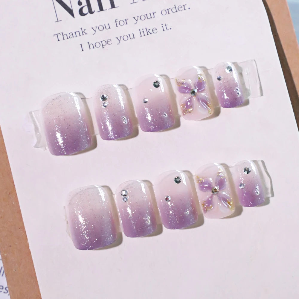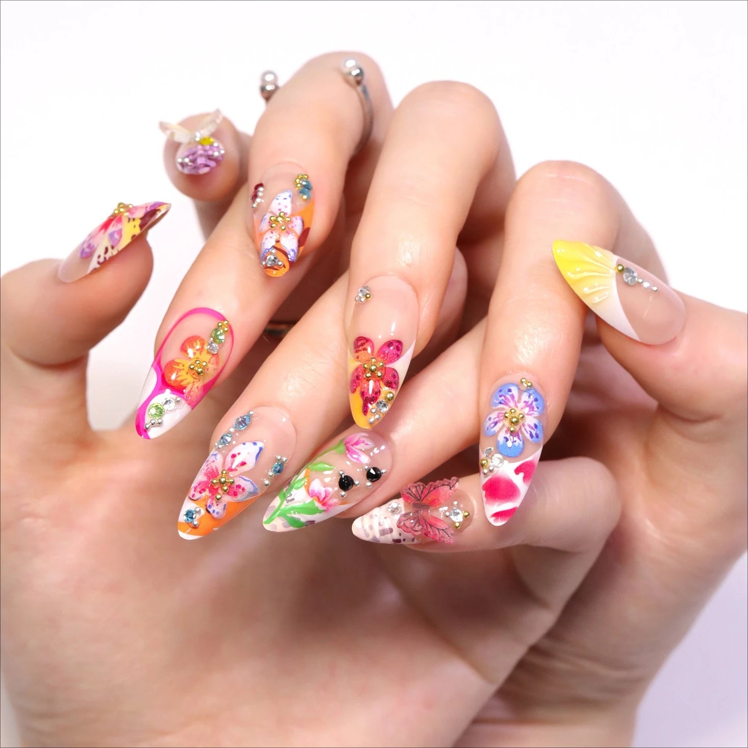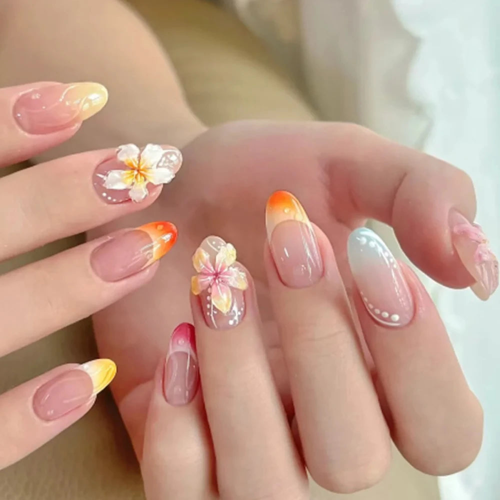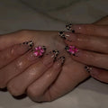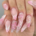 Pink Magic Mirror French 3D Flowers Nail Art Fashion Almond Wearable False Nails Detachable Finished Fake Nails Press on Nails