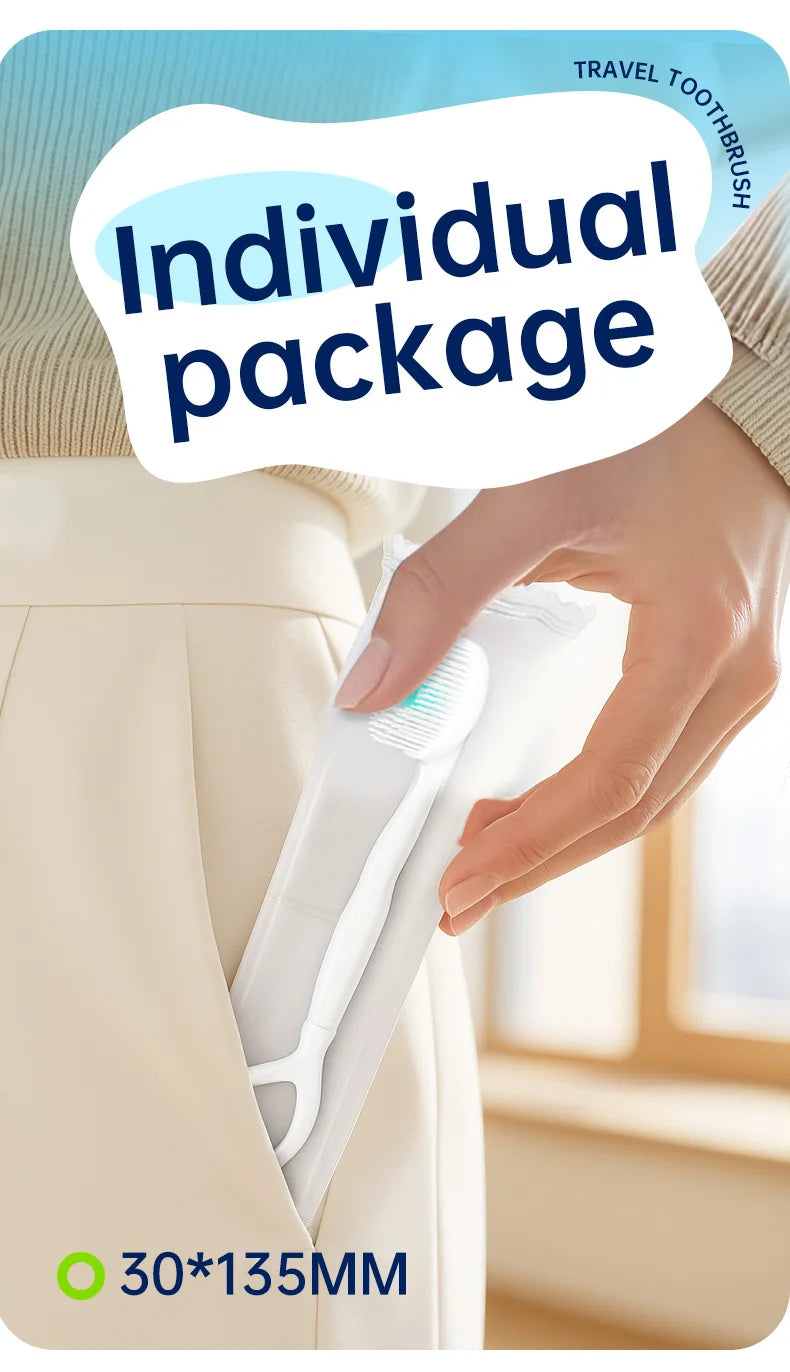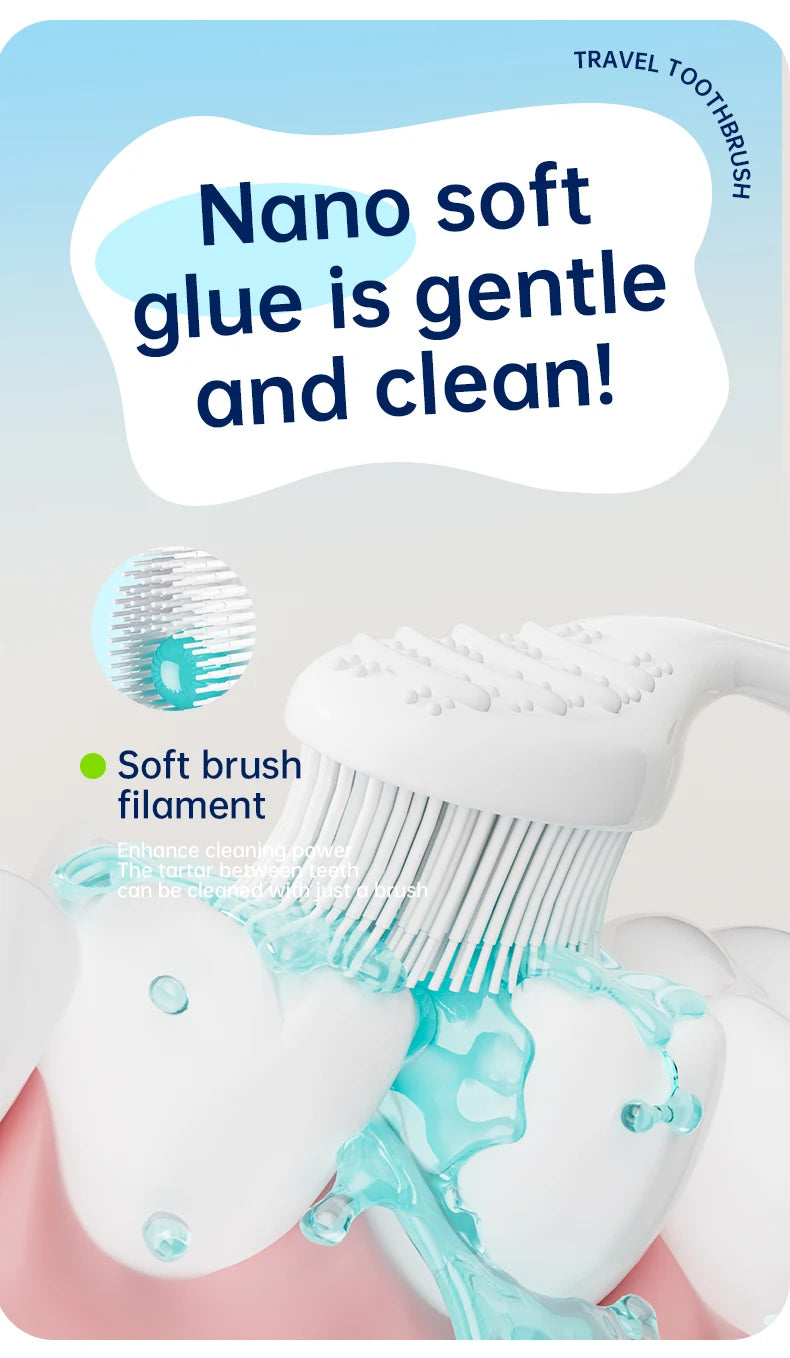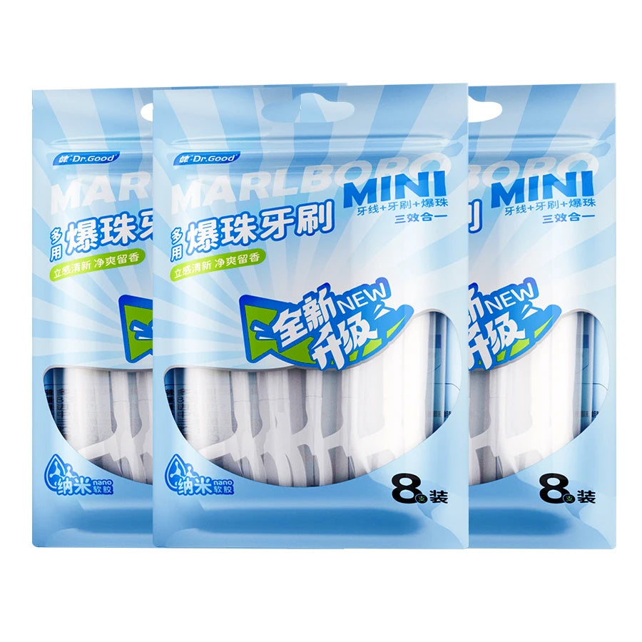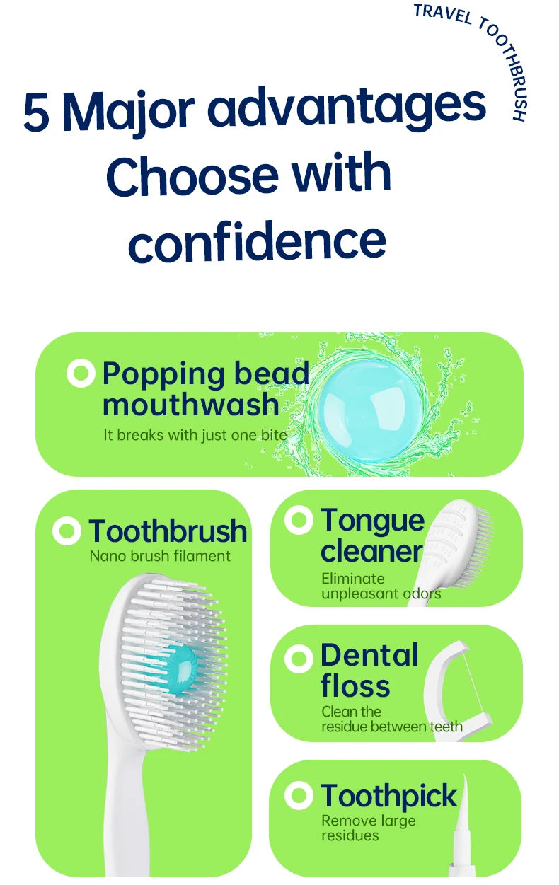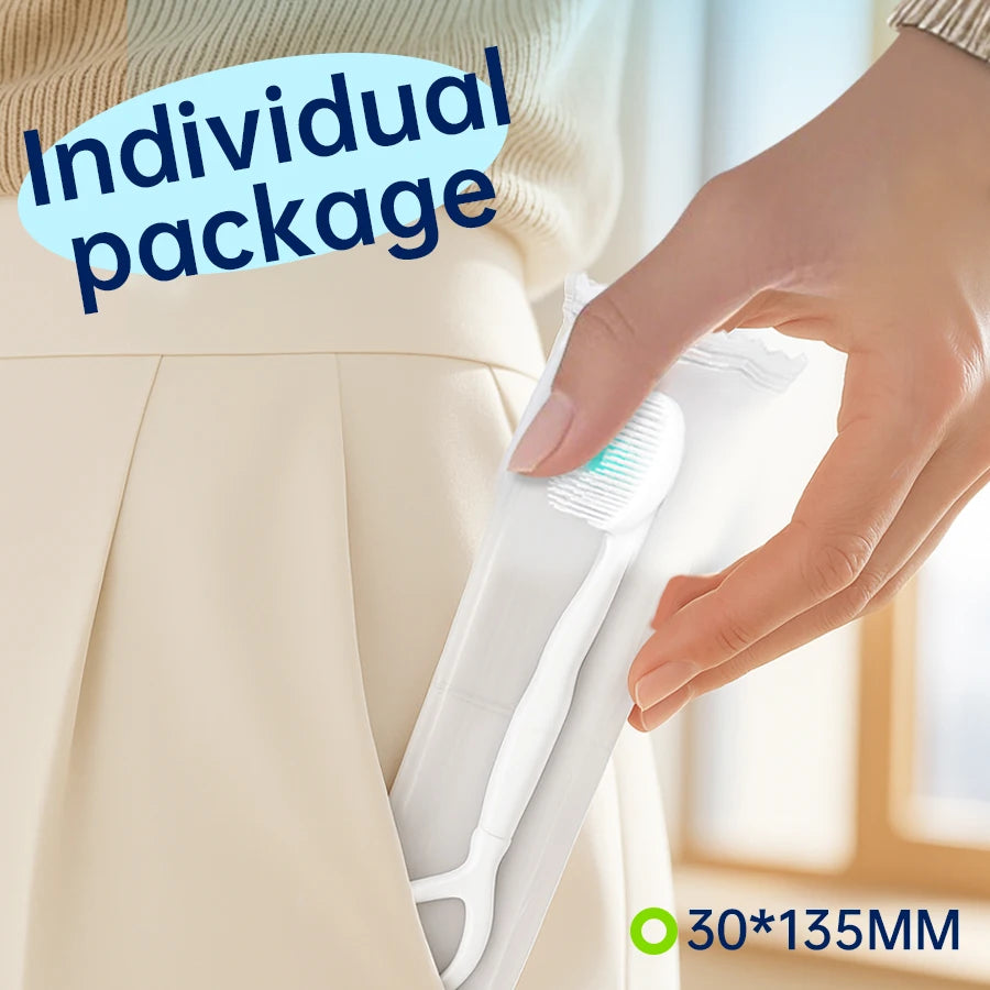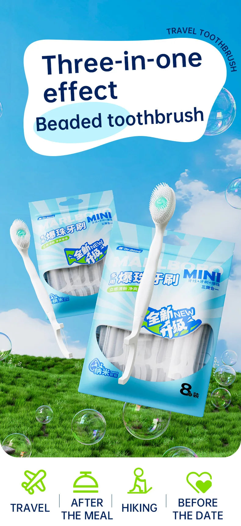 Portable and individually packaged 3-in-1 nano brush head toothbrush floss disposable toothbrush for adults on business trips