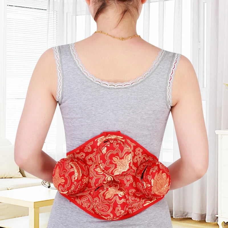 Red Embroidery Moxibustion Bag Moxa Burner Acupuncture Heating Therapy Warm Uterus Chinese medicines Massage Gun Body Massager