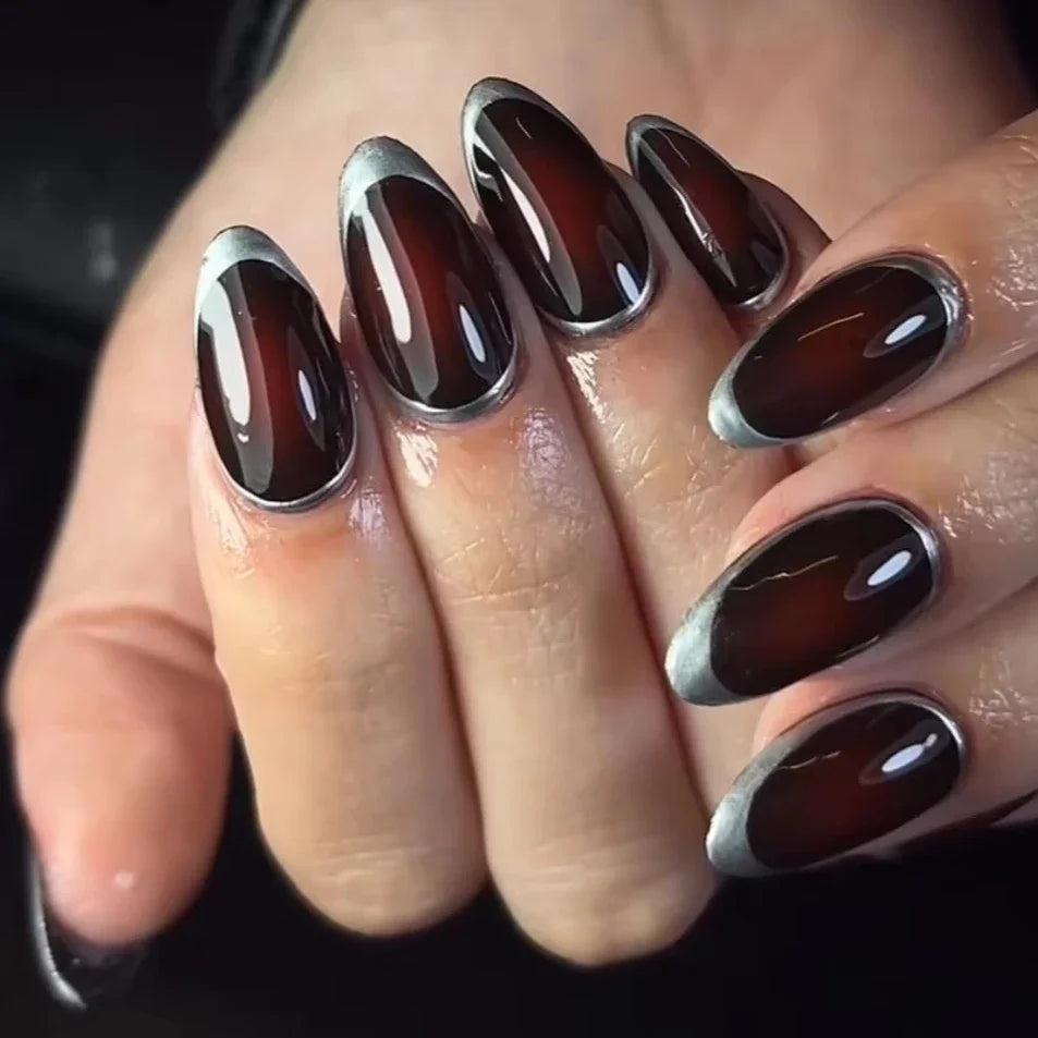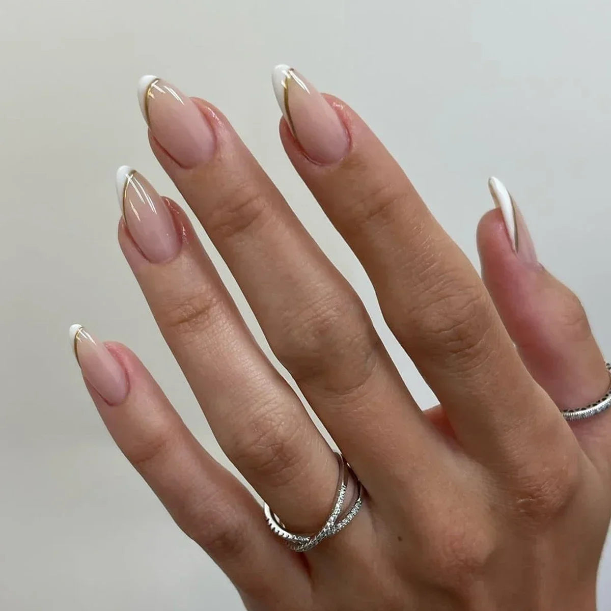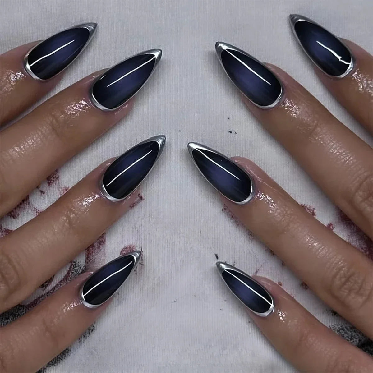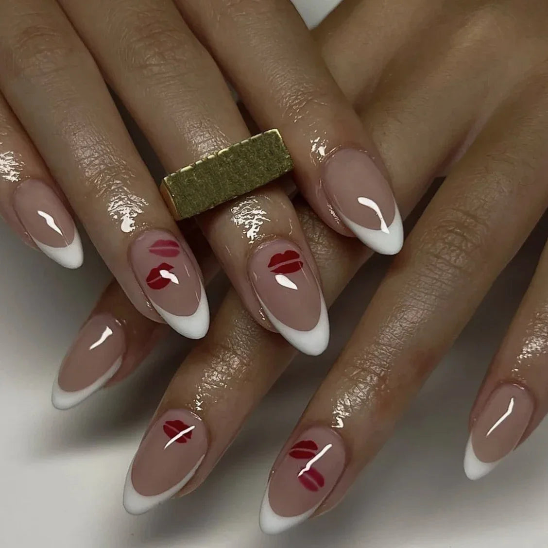 Silver Glitter Powder White Simple Red Lips Gold Almond Fake Nails Art False Nails Charms Tip Punk Press on Nails Manicure Tools