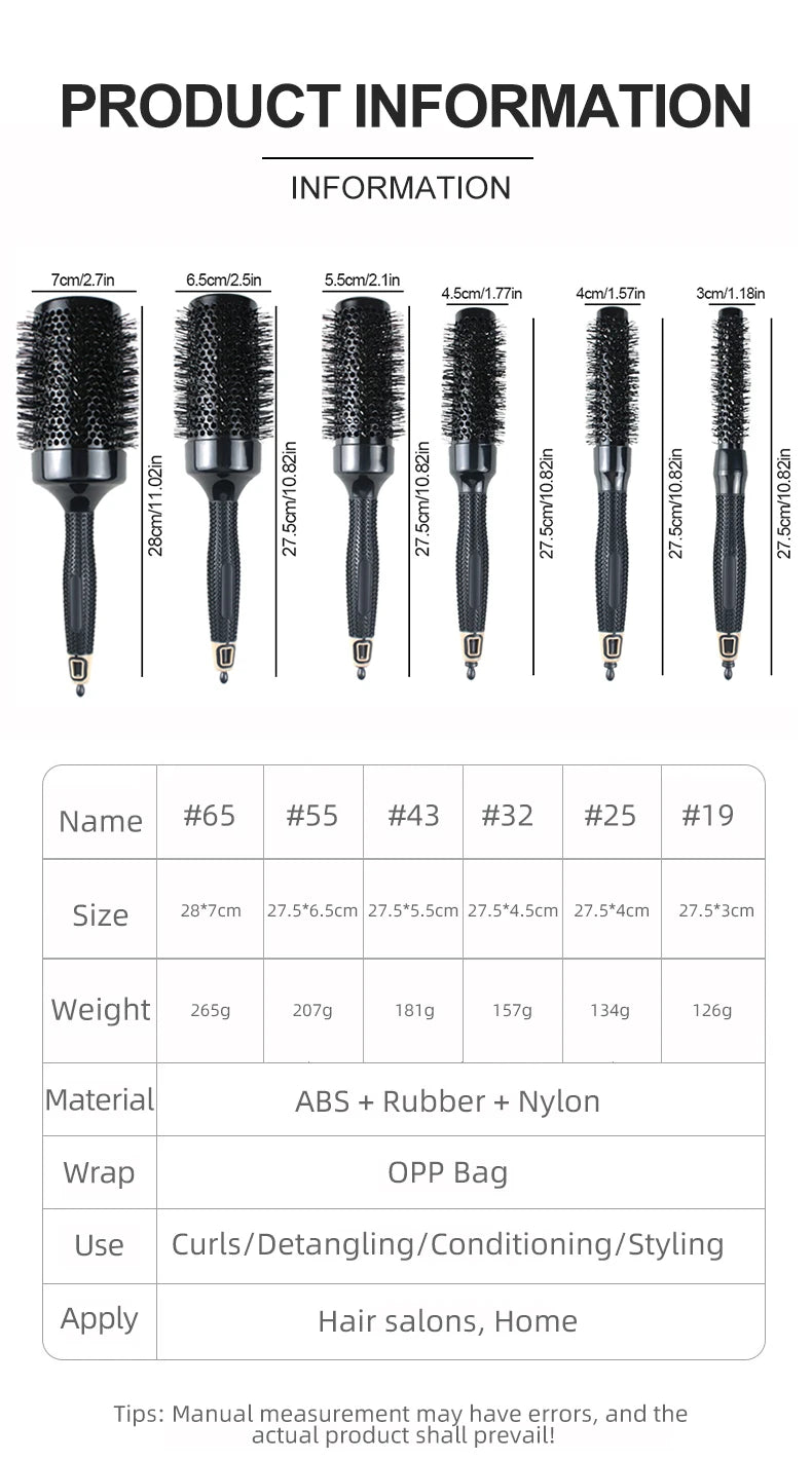 Wholesale High Quality Custom Logo Soft nylon Brush for Salon and home Roll Round Brush Set for Beauty Salon Blower