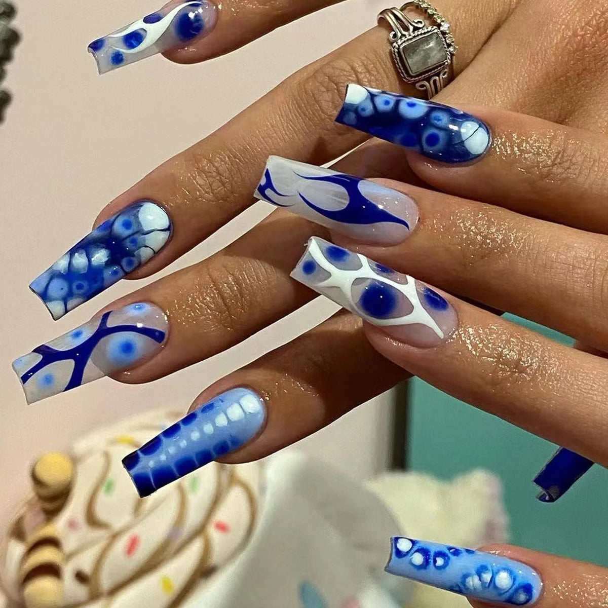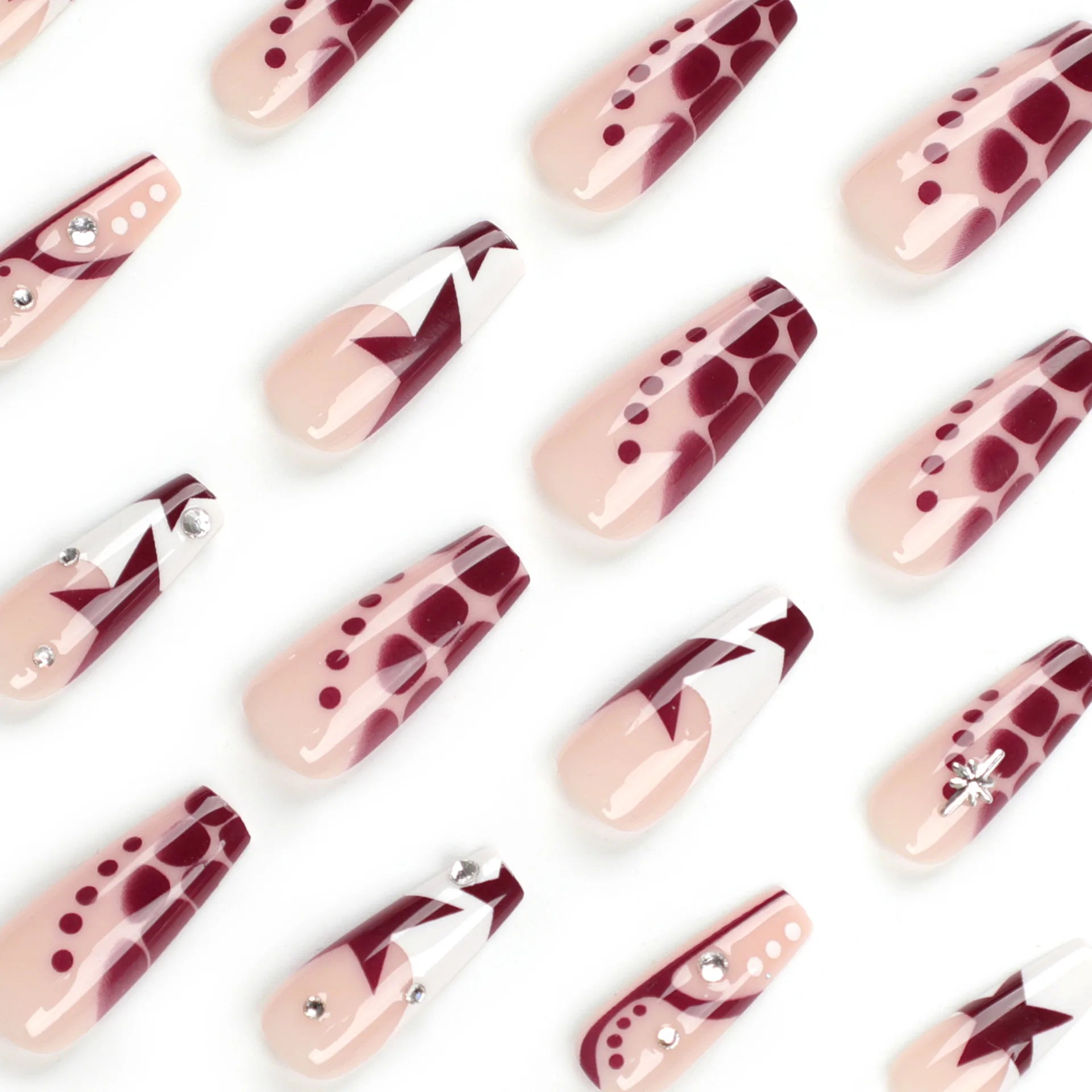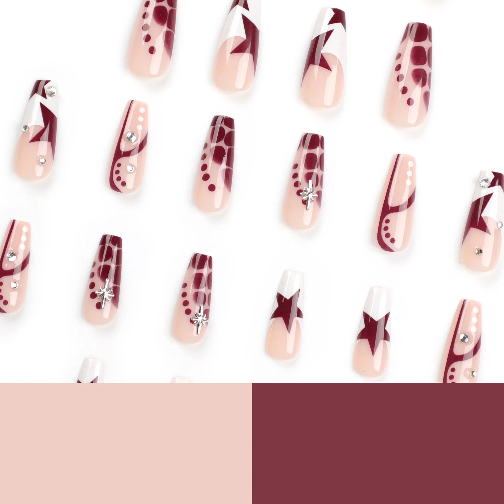 y2k Red Star False Nails Patches White French Press on Nail with Crocodile Women Girl Wearable Acrylic Nail Tips Manicure Gifts